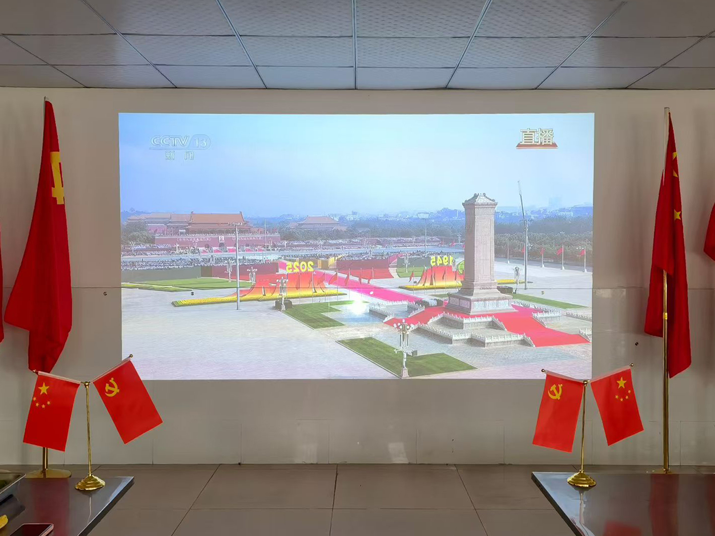 2025年9月3日上午,為紀念中國人民抗日戰爭暨世界反法西斯戰爭勝利80周年,公司組織全體員工集中觀看了在北京天安門廣場舉行的盛大閱兵儀式直播。